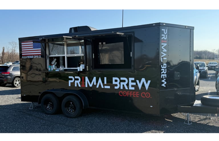Treat your guests, clients, or employees to everything you love about Primal Brew Coffee. Our coffee trailer offers espresso bar services, including custom menu. We can’t wait to bring our hospitality and smiling faces to your event!